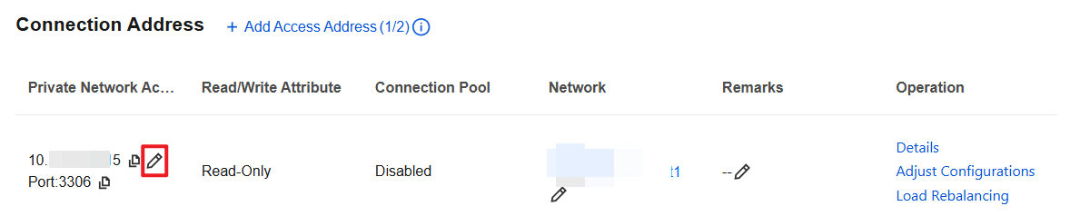 Read/Write Attribute | Select the read-write attribute of the proxy access address, which can be Read/Write Separation or Read-Only. |