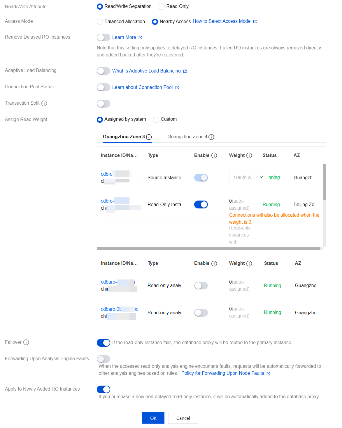 After creating a read-only instance, you can purchase the database proxy service and configure the connection address policy. Then, you can configure the database proxy address in your application so as to automatically forward write requests to the source instance and read requests to the read-only instance. This document describes how to enable read/write separation in the console.