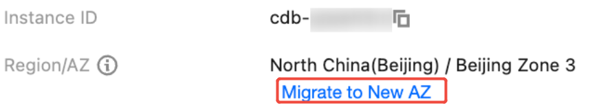 1. Log in to the TencentDB for MySQL console. In the instance list, click an Instance ID or Manage in the Operation column to enter the instance details page. 2. On the Instance Details page, select Basic Info > Region/AZ and click Migrate to New AZ, or select Availability Info > Deployment Mode and click Modify Replica AZ.
