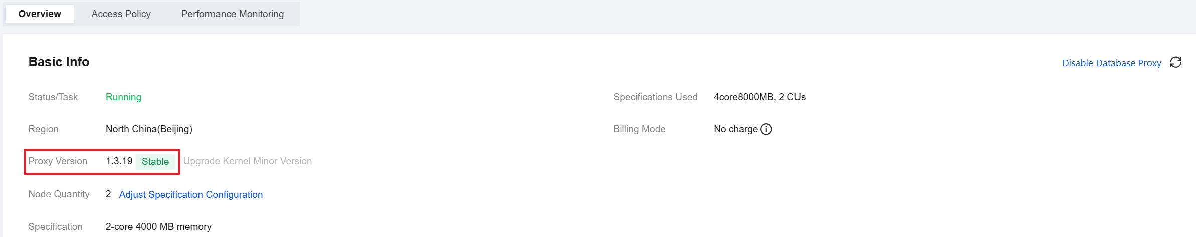 Viewing the database proxy version