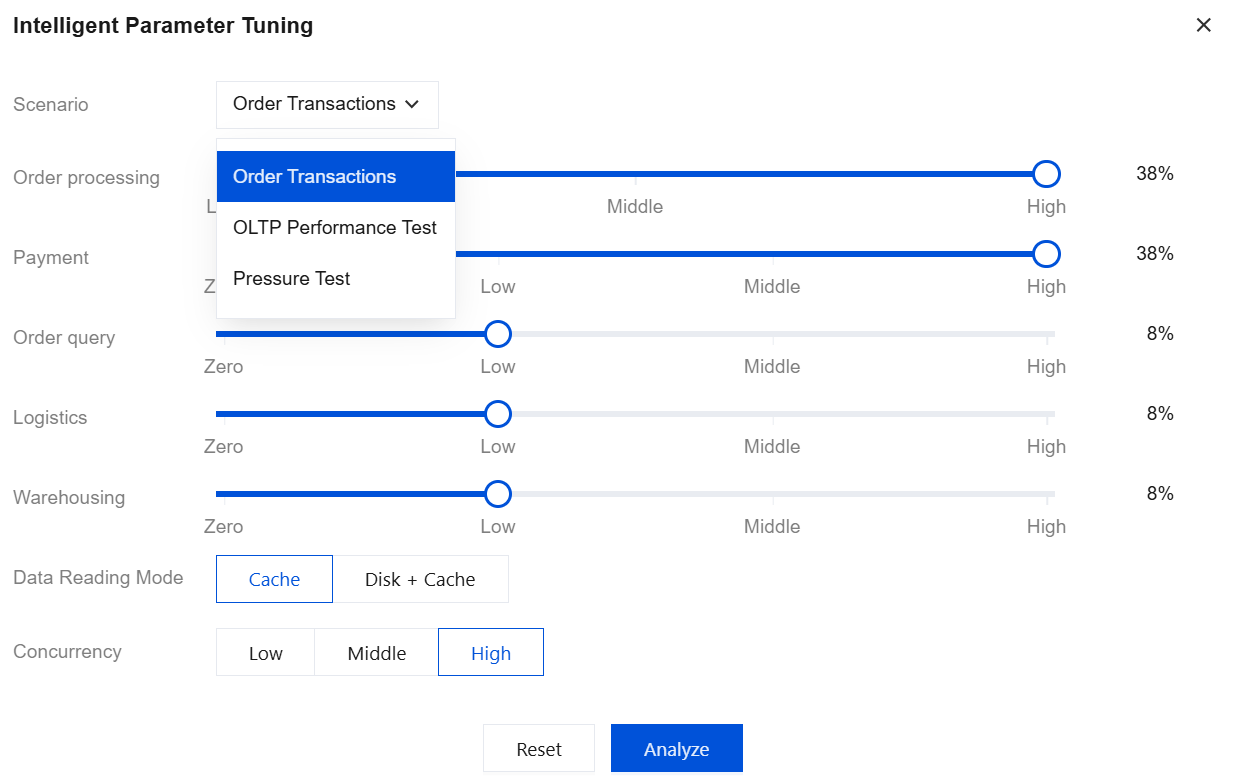 The intelligent parameter tuning feature currently is supported only in Beijing, Shanghai, and Guangzhou regions and will be available in more regions in the future.