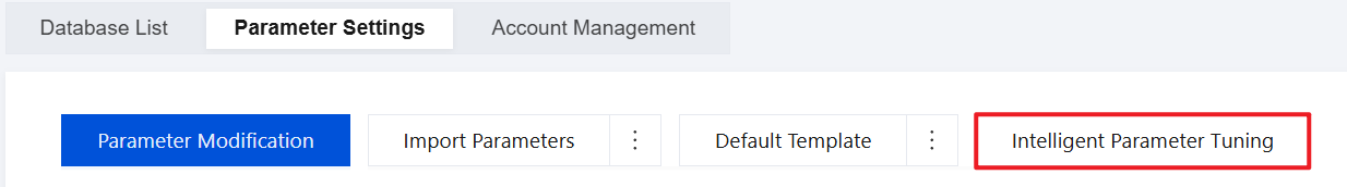 1. Log in to the TencentDB for MySQL console and select a region at the top. In the instance list, click an instance ID or Manage in the Operation column to enter the instance management page. 2. On the instance management page, select Database Management > Parameter Settings > Intelligent Parameter Tuning.