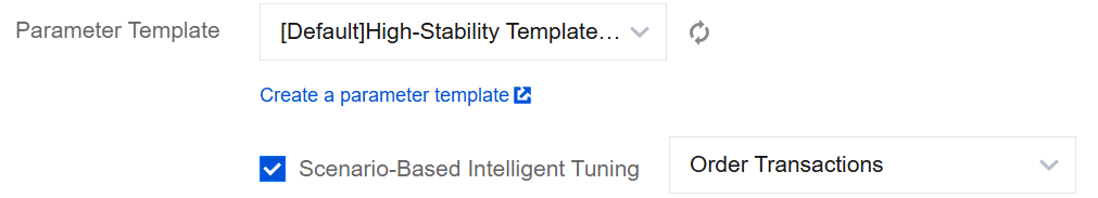 When purchasing a TencentDB for MySQL instance, you can enable Scenario-Specific Intelligent Tuning after selecting a parameter template. Once enabled, the system will further fine-tune configurations based on the chosen parameter template and corresponding business scenario. Three business scenarios are supported: transactional scenario, OLTP performance testing, and load testing.