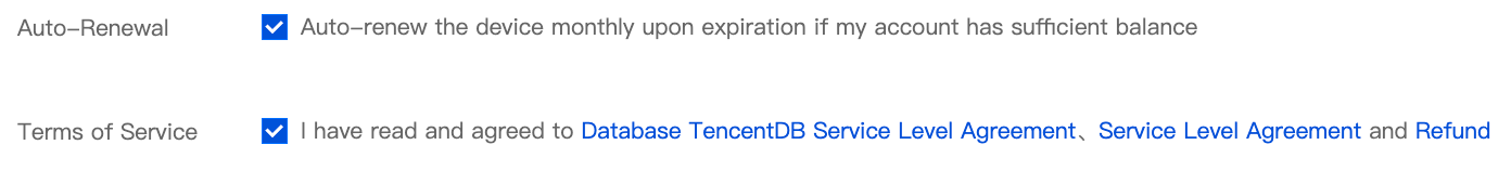 Automatic renewal cycle: The automatic renewal cycle and mode you have set shall prevail. For example, if you select a cycle of 1 month, the system will automatically renew it for 1 month each time it expires.