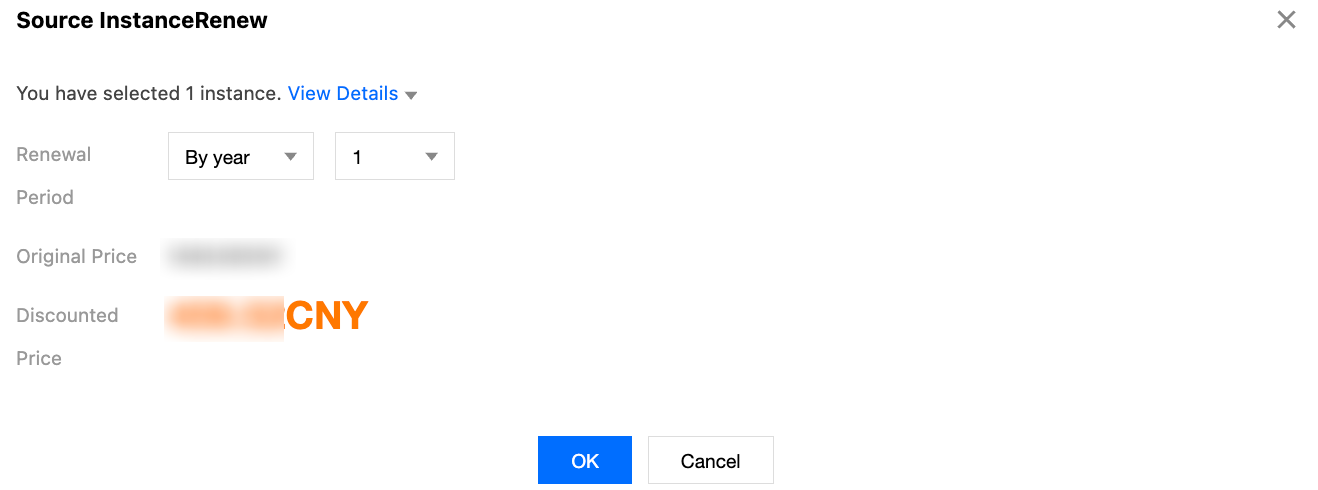 Deducted amount: The instance renewal fee is the same as the new instance purchase fee. For instance fees, see the Purchase Page. Deduction time and method: When you perform manual renewal, the page will navigate to the payment interface. The renewal will take effect immediately after payment.
