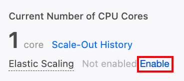 Number of cores for scale-out | The default value is consistent with the number of CPU cores of the current instance specification. For example, if the current instance specification is 6-core and 24,000 MB of memory, the number of cores for scale-out will also be 6 cores. After scale-out is successfully triggered, the CPU of the instance will be 12 cores. |