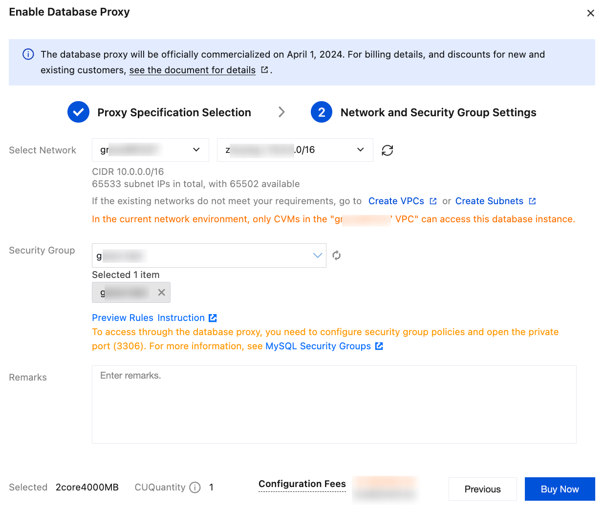 Remarks | (Optional) Enter the remarks of the database proxy service to be enabled. |