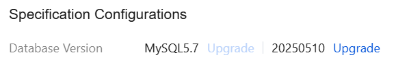 Instance Limits | The database upgrade operation from MySQL 5.7 to MySQL 8.0 is only supported for local disk instances with two-node or three-node architecture. |