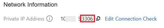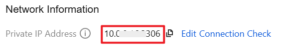 <Private network IP address>: Replace it with the private network address of your target MySQL instance, which can be viewed on the instance details page in the TencentDB for MySQL console. <Username, default is root>: Replace it with the account name of your target MySQL instance. The default account name is 'root'.