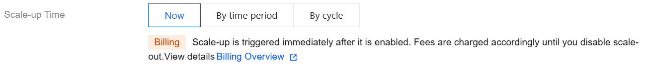 Scale-up Time: Supports Now, By time period, and By cycle. Select one for configuration based on actual needs.