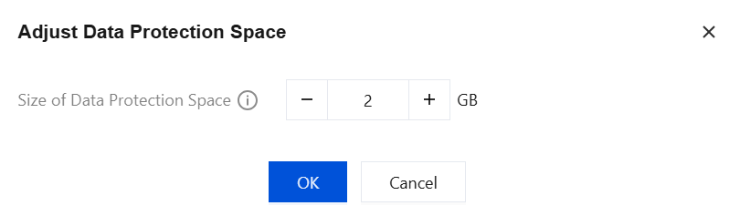 3. In the pop-up, configure the required data protection space size. The selectable range is 1 GB - 10 GB, and then click OK.