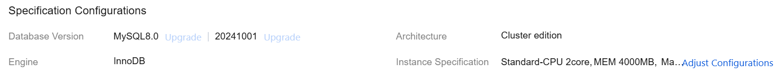 Specification | Select the instance specifications you wish to modify. For specifications specifically supported by the Cluster Edition, see Database Instance Specification. |