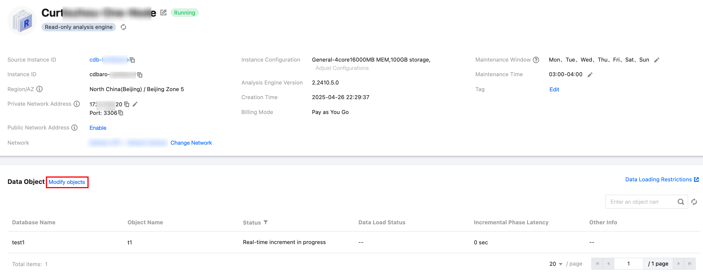 In all objects mode, all databases and tables in the TencentDB for MySQL instance are automatically synchronized to the read-only analysis engine. If certain objects do not meet the loading requirements, they will be automatically ignored and will not be loaded into the engine.