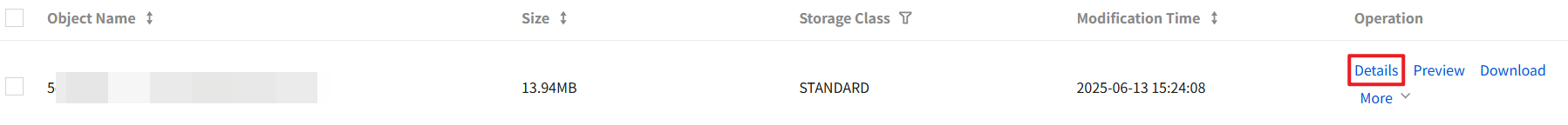 6. After uploading the file, locate the target file in the file list, click the ellipsis icon in the upper-right corner, and then click Details.