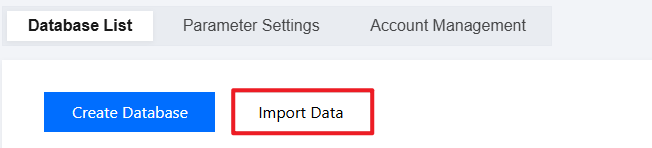 1. Log in to the TencentDB for MySQL console. In the instance list, click an Instance ID or Manage in the Operation column to access the instance management page. 2. On the instance management page, select Database Management > Database List and click Import Data.