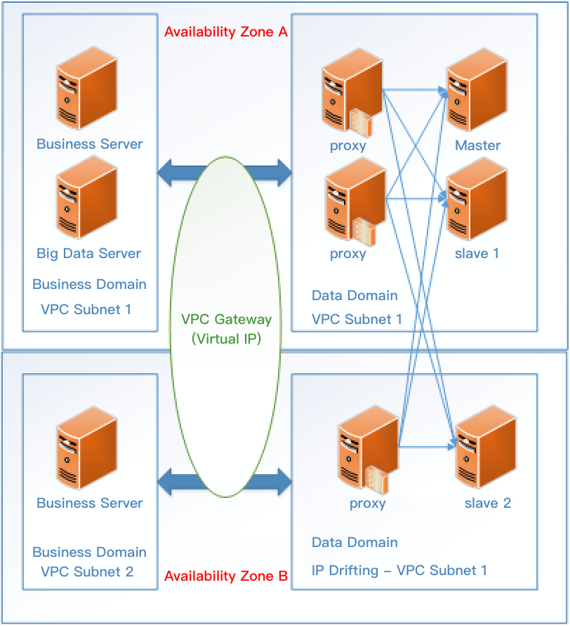 Cross-region VPC gateway is deployed on the frontend of the proxy module to support virtual IP drifting.