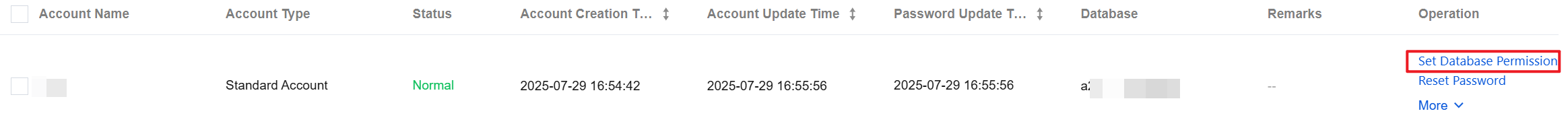 The account type in Step 2 is standard account. If the account type is privileged account, the operation is as follows: Click Set Table Permissions in the Operation column.