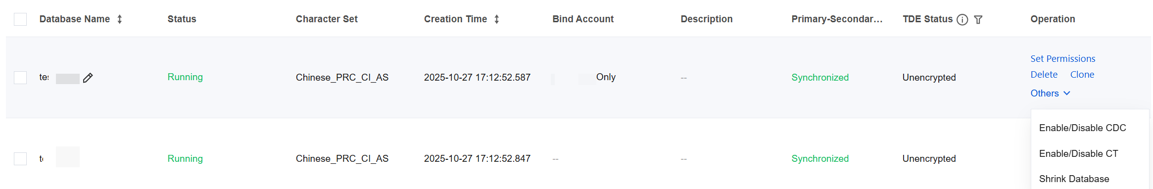 1. Log in to the TencentDB for SQL Server console. In the instance list, click an Instance ID or Manage in the Operation column to access the instance management page. 2. On the Database Management tab, locate the row of the database to be shrunk and click Other > Shrink Database in the Operation column.