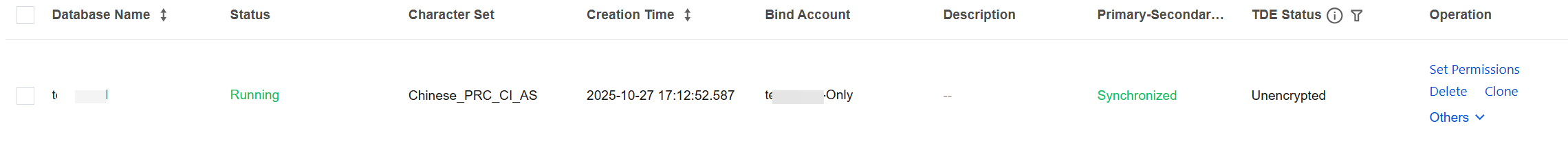Batch resetting permissions will clear all set database account permissions; that is, account permissions of the selected databases will be reset.