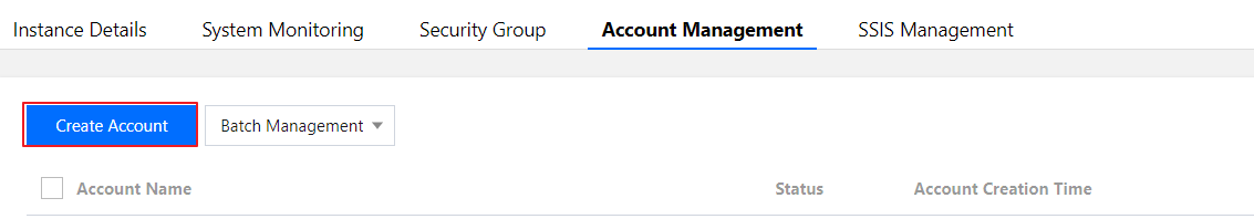 5. After successful creation, you can view the information of the new account on the Account Management tab, including account name, status, account creation time, account update time, password update time, and remarks. You can also perform operations on it, including Reset Password and Delete Account.