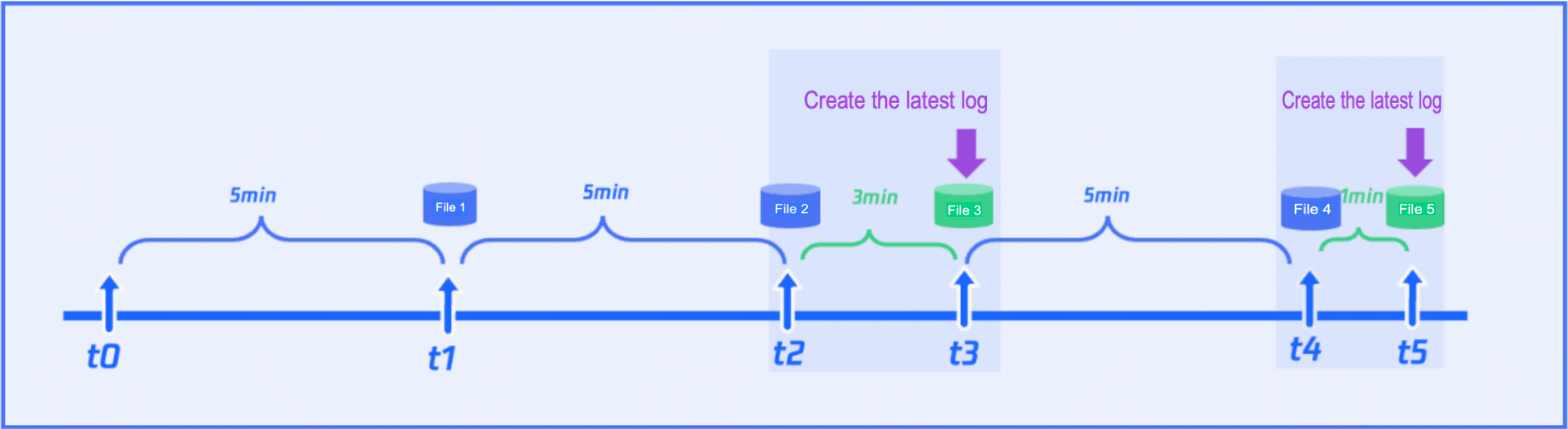 Creating the latest log will immediately cut off and package the file that is being generated but has not met the packaging time for upload. Specifically: with a collection frequency of generating one log file every 5 minutes, if the latest file has only been collected for 3 minutes, clicking "Create Latest Log" will immediately cut off, package, and upload the current 3-minute log for user download. Subsequent log files will resume generation from the cutoff time according to the established collection frequency.