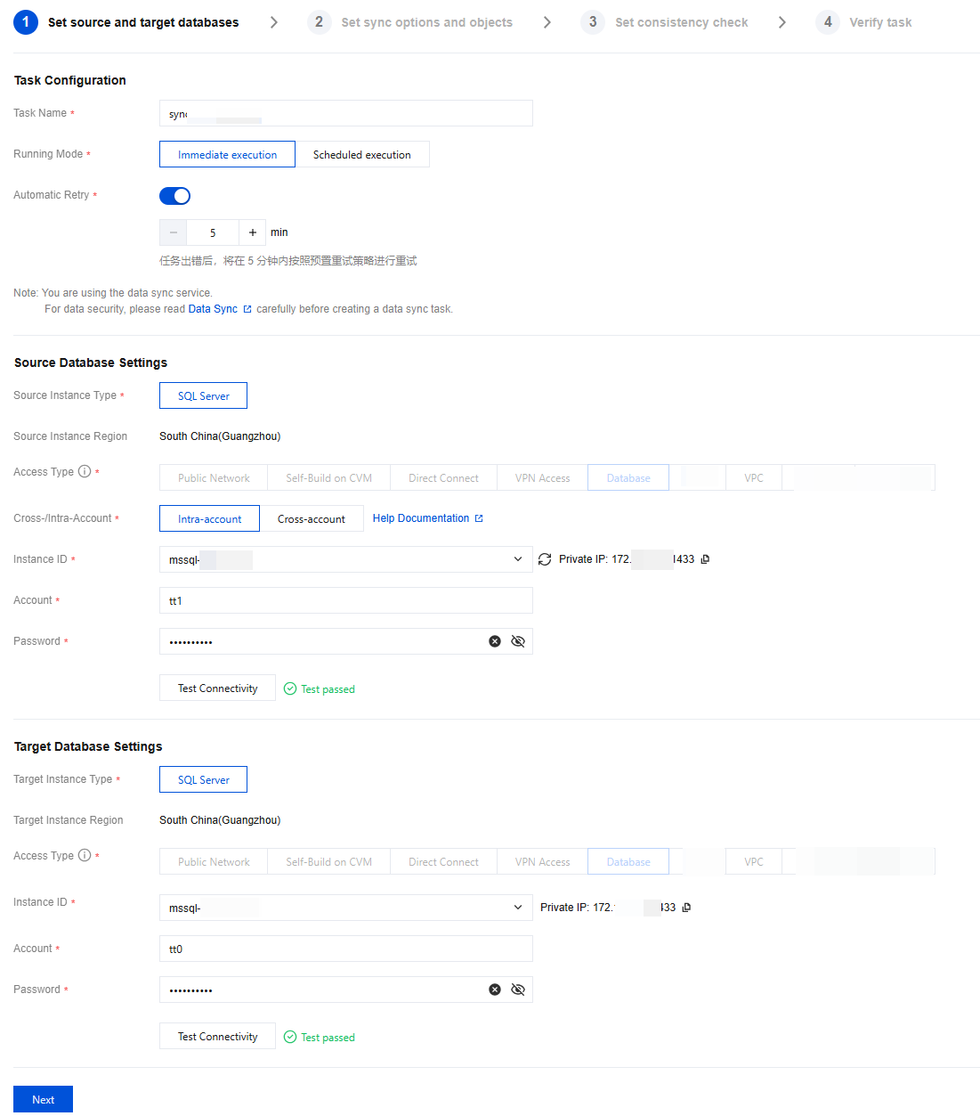 Target Instance Type | Select SQL Server. Currently, only the synchronization link from SQL Server to SQL Server is supported. |