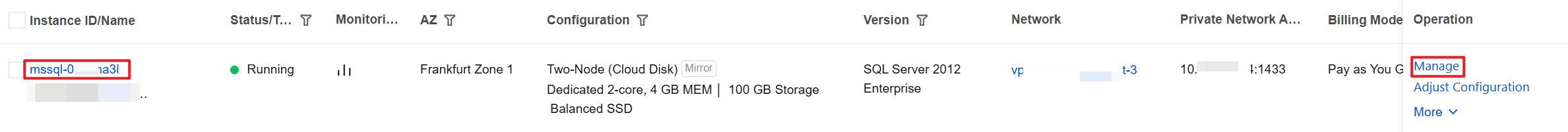 Estimated Next Backup Time | Displays the next backup time for the current instance. The console shows the time in Beijing (UTC+8). |
