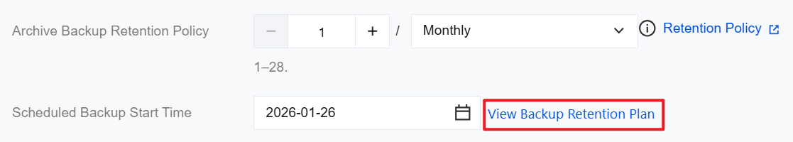 After setting the periodic backup retention policy and start date, you can click View Backup Retention Plan after the periodic backup start time to preview the backup schedule.