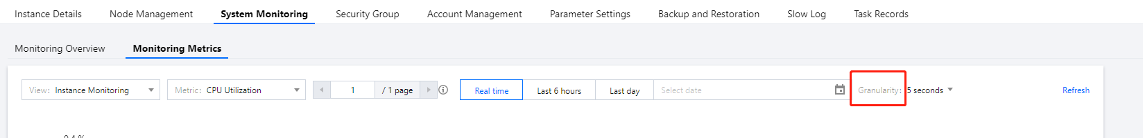 | Maximum CPU utilization of nodes | Redis node | cpu_max_util | % | Maximum CPU utilization of nodes (shards or replicas) in the instance |