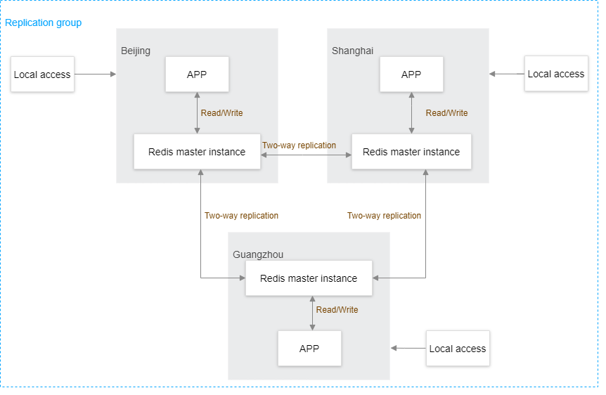 When the native code of Redis performs cross-region replication, if the local instance is written excessively or is disconnected from replication for a long time, the backlog of the master node may not be able to resume the replication, resulting in mandatory full replication by the remote instance. This will block access to and seriously affect the normal business of the remote instance. For more information, see Replication. In addition, Redis' native replication scheme does not mark written nodes in the backlog, which tends to cause replication loops and data inconsistency when two-way replication is required between the local and remote instances.