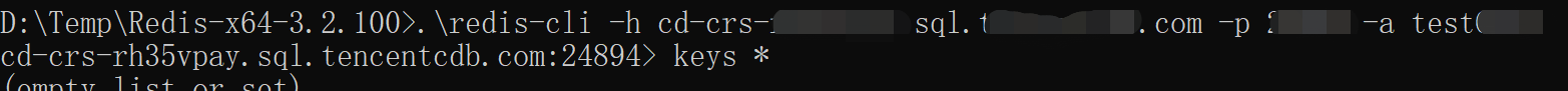 path is the installation directory of redis-cli. For example, run cd /d D:\\Temp\\Redis-x64-3.2.100.redis-cli -h <hostname> -p <port> -a <password>