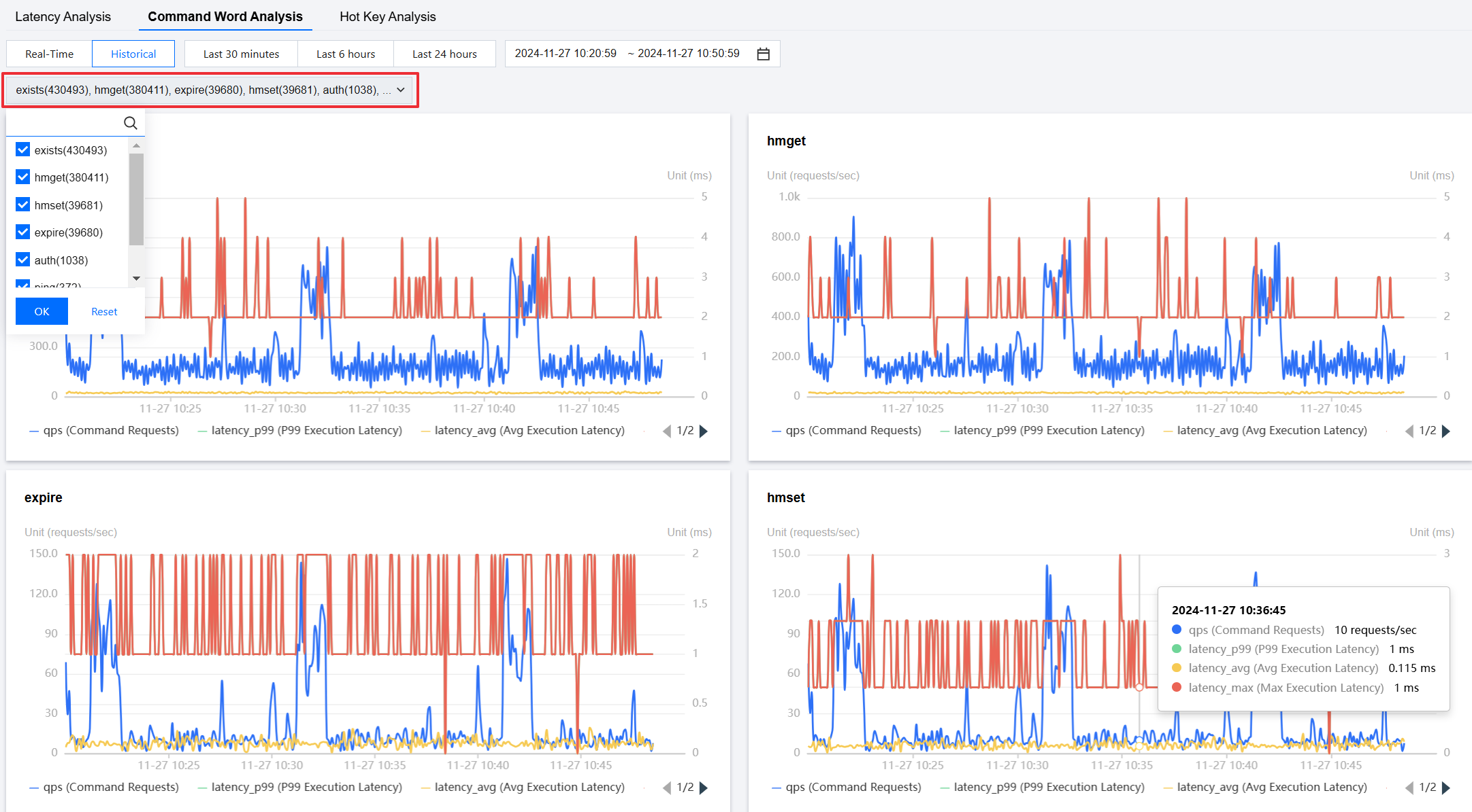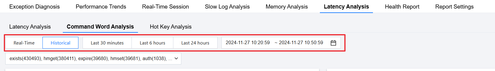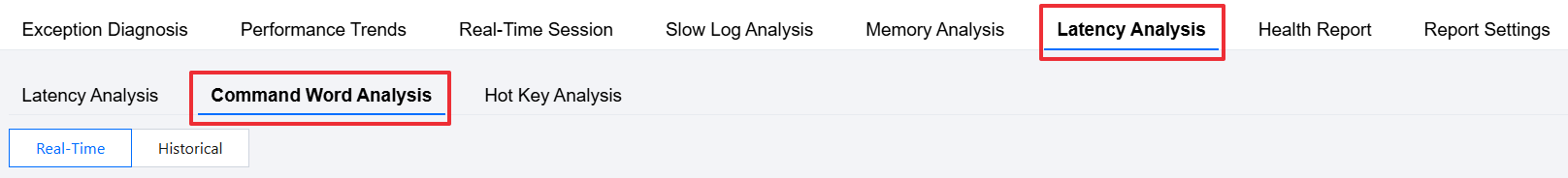 3. At the top of the page, select the corresponding database and instance ID, then select Latency Analysis > Command Word Analysis tab.