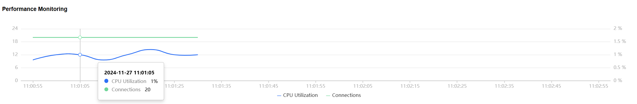 In the Performance Monitoring area, you can view the number of connections and CPU utilization trends of the selected Proxy node.