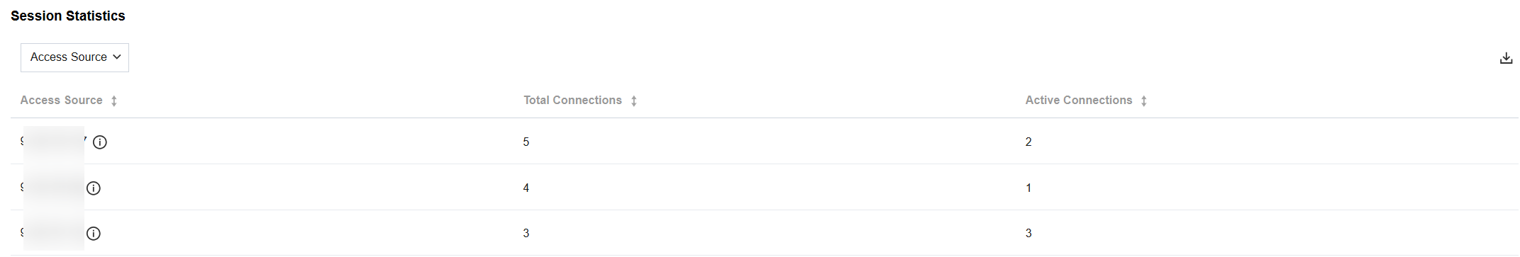 In the Session Statistics area, you can view the statistics of the current access sources, total connections, and active connections of the selected proxy node.