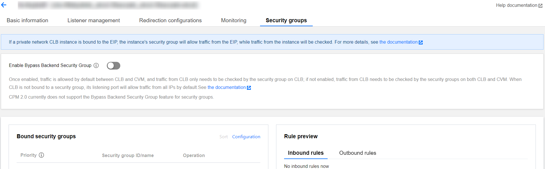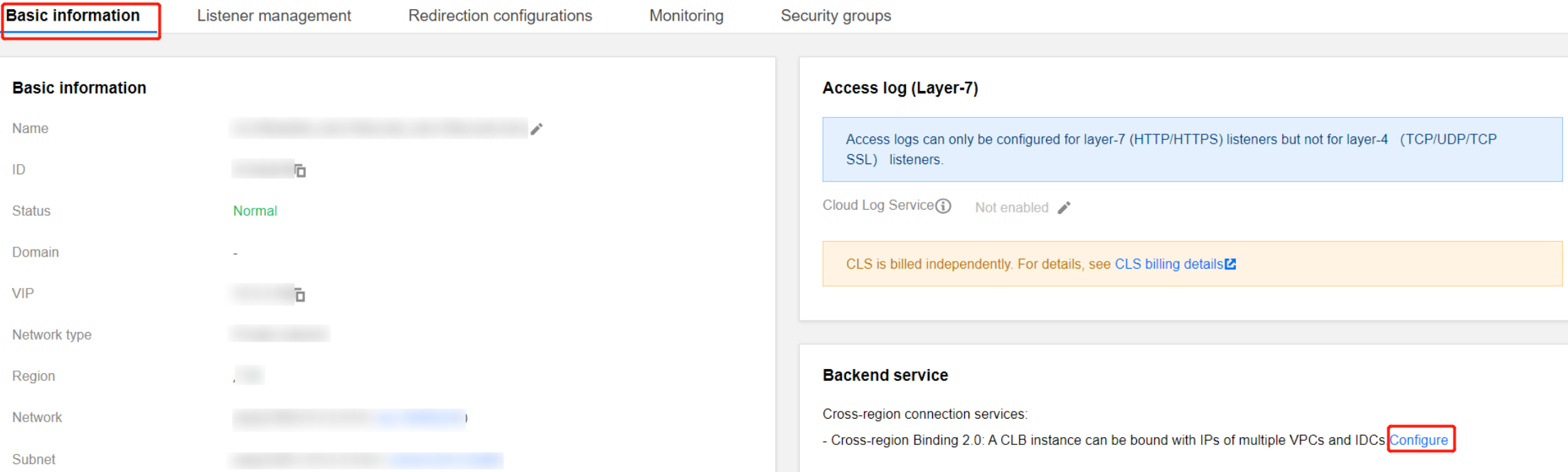 1.1 Log in to the CLB console, select a region, and click Instance ID in the instance management list to enter the instance management page. 1.2 In the Backend service section of the Basic information tab, click Configure.