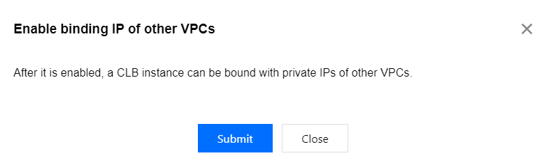 1. Enable cross-VPC access (which allows CLB to bind to other private IP addresses).