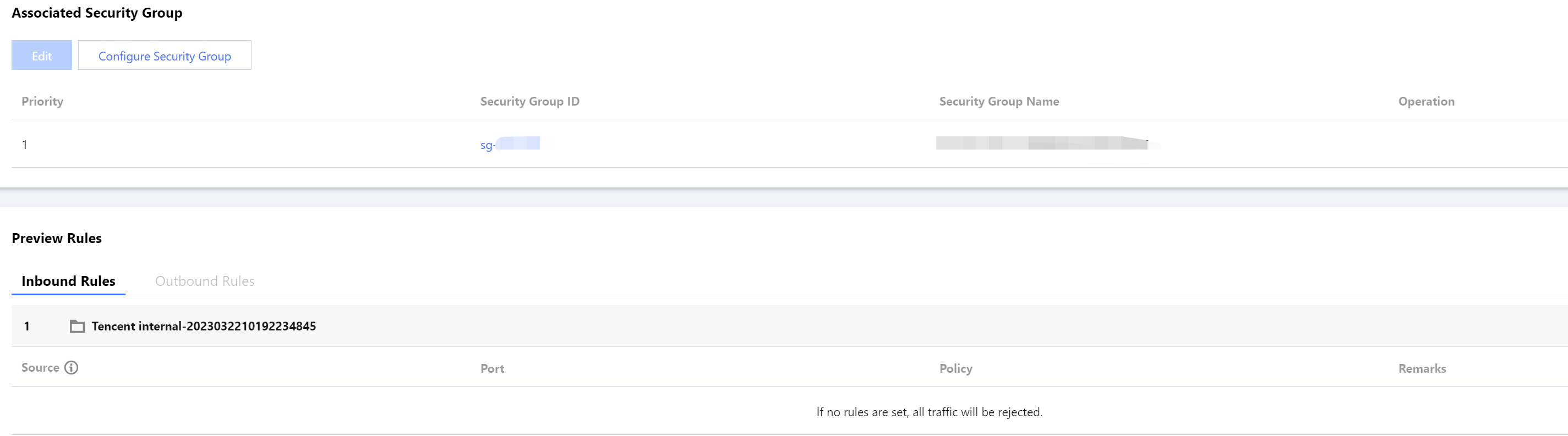 Make sure the login account is a standard account (with bandwidth upgrade). If you are unable to bind the Tencent Cloud Distributed Cache instance, submit a ticket for assistance. Step 4: Configuring Tencent Cloud Distributed Cache Security Groups