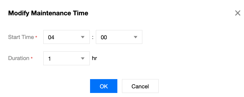 8. Click OK. You can view the newly set maintenance time on the Instance Details page.