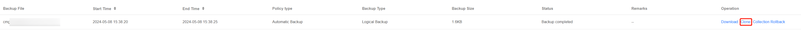 8. In the Operation column, click Clone.