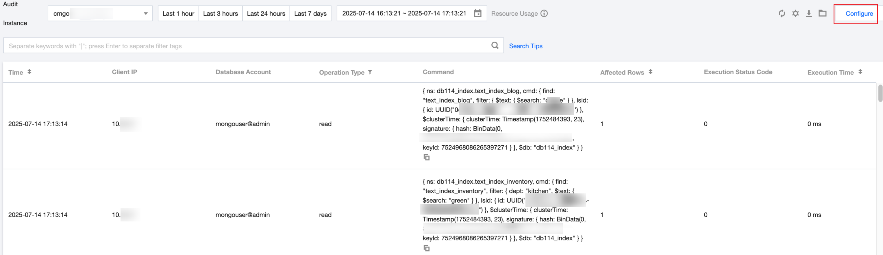 5. Click the instance ID with auditing enabled to redirect to the Audit Log page to view the corresponding log.
