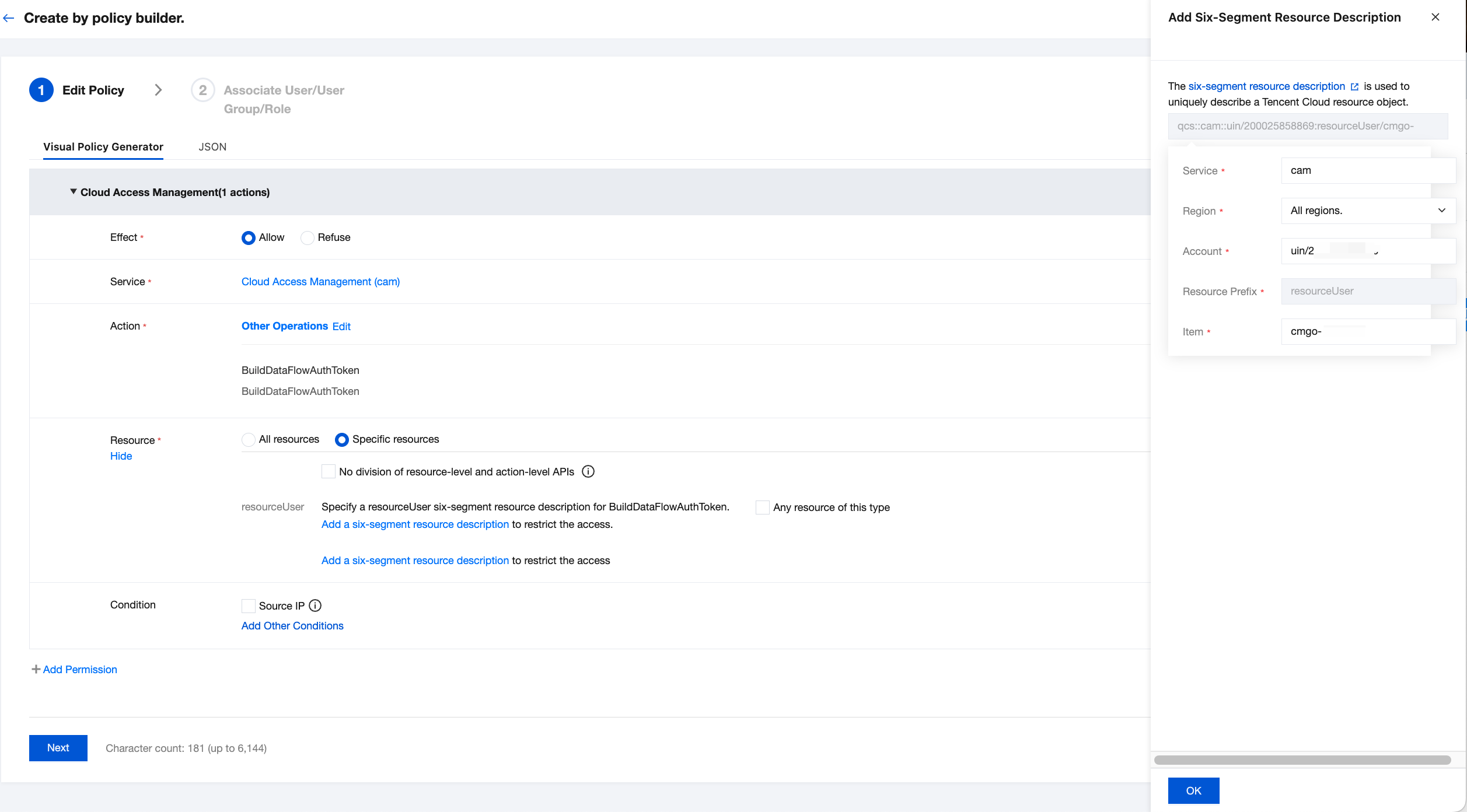 Enabling prerequisite | Before CAM authentication is enabled, it is required to configure the related permission policies in Tencent Cloud CAM in advance. |
