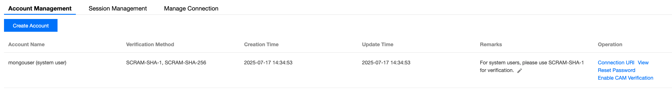 控制台创建的用户:认证库统一为 admin,连接时需指定 authSource=admin。