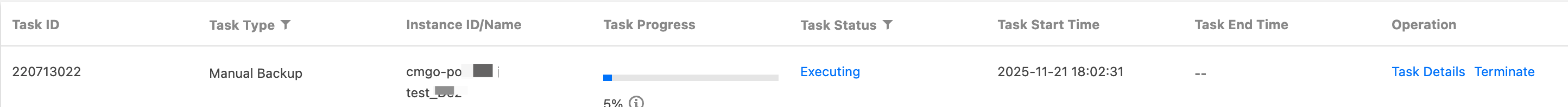 | Querying the Backup Task List of an Instance |