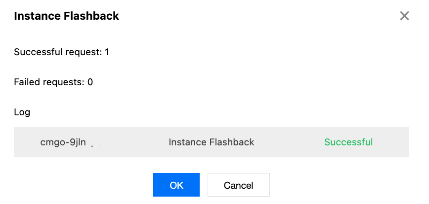 3. Click Flash Back and confirm the instance information in the instance flashback pop-up window.