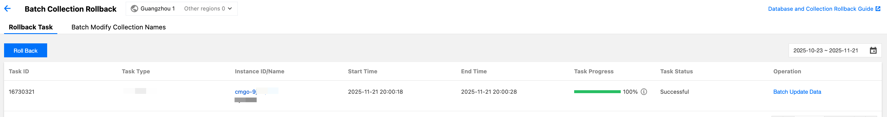 1. On the Batch Collection Rollback page, wait for the task to complete.