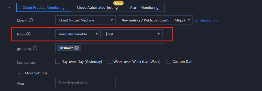 4.1 Select the template variable and corresponding template in the Create Monitoring Chart or Edit Monitoring Chart column.