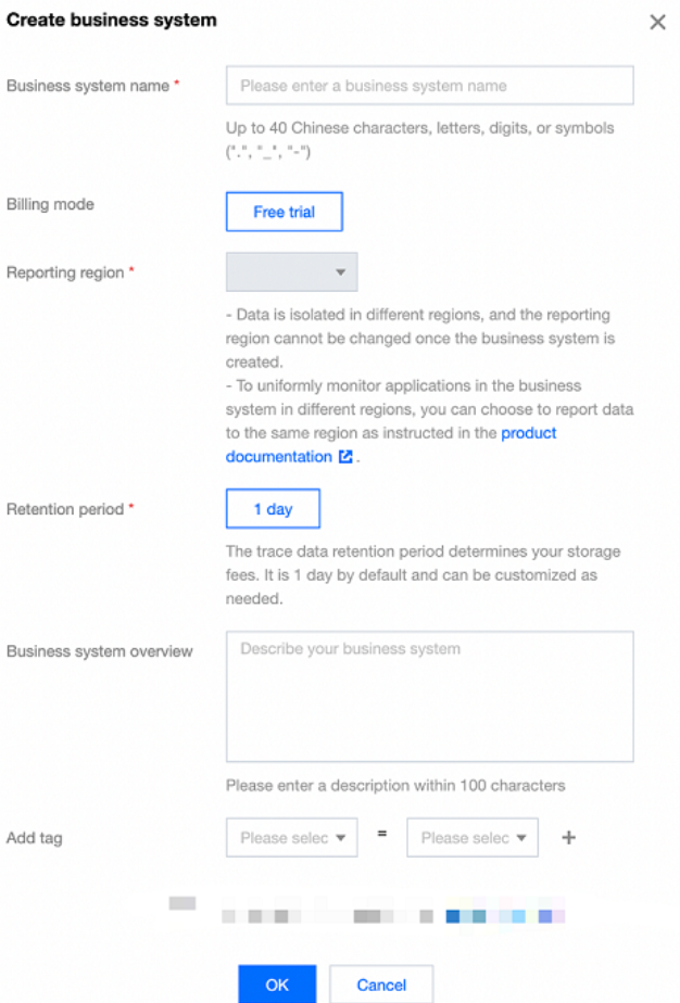 2. On the Resource management page, select the target region, click Create, enter the business name, and select the retention period (the longer the retention period, the higher the fees). Then, indicate your consent to the agreement and click OK.