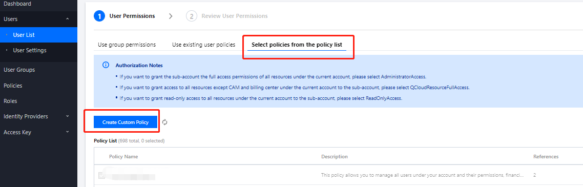 {"version": "2.0","statement": [{"effect": "allow","action": ["apigw:DescribeServicesStatus","apigw:DescribeApi","apigw:DescribeService","apigw:CreateService","cam:ListGroups","cam:DescribeSubAccountContacts","cam:GetRole","cam:GetGroup","scf:ListNamespaces","scf:ListFunctions","scf:ListVersionByFunction","scf:ListAliases","scf:CreateFunction","scf:GetFunction","tdmq:CreateSubscription","tdmq:ResetMsgSubOffsetByTimestamp","tdmq:DescribeClusters","tdmq:DescribeEnvironments","tdmq:DescribeTopics","tdmq:DescribeSubscriptions","ckafka:DescribeInstanceAttributes","ckafka:DescribeInstances","ckafka:DescribeTopic","ckafka:DescribeRoute","cls:DescribeTopics","cls:DescribeLogsets","cls:SearchLog","cls:DescribeLogsets","cls:DescribeTopics","monitor:GetMonitorData","monitor:DescribeAlarmNotices","cam:CreateRole","cloudaudit:*","dts:DescribeSubscribes""es:DescribeInstances","tag:DescribeTagKeys","tag:DescribeTagValues"],"resource": "*"}]}