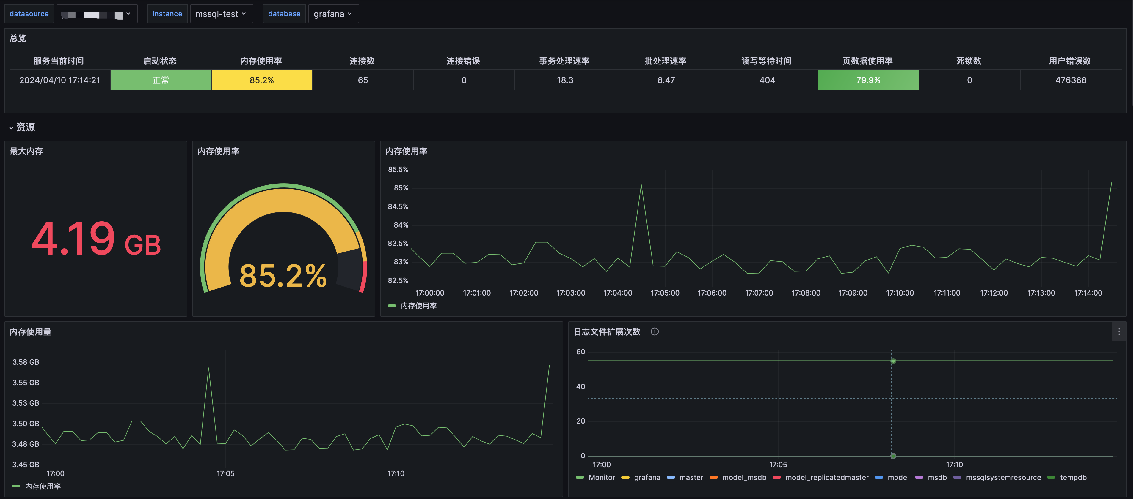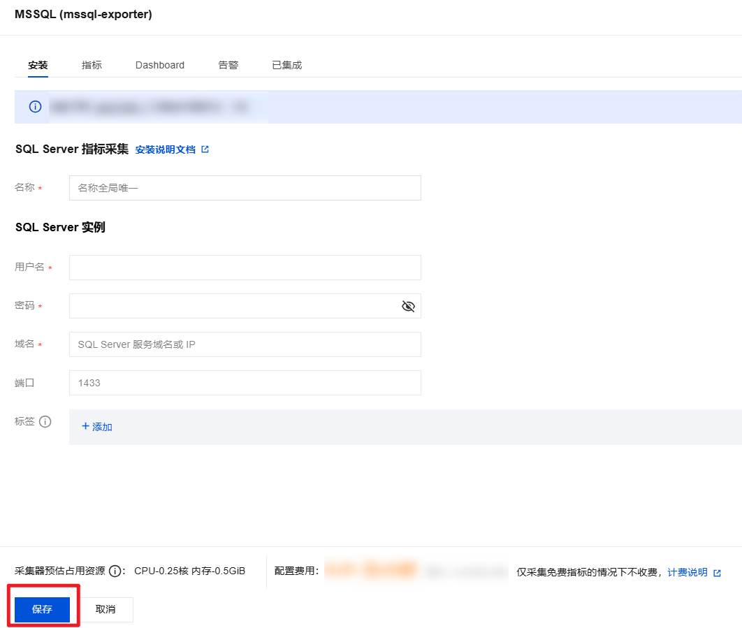 apiVersion: apps/v1kind: Deploymentmetadata:labels:k8s-app: mssql-exporter # 根据业务需要调整成对应的名称,建议加上 MSSQL 实例的信息name: mssql-exporter # 根据业务需要调整成对应的名称,建议加上 MSSQL 实例的信息namespace: mssql-demo # 根据业务需要调整成对应的命名空间spec:replicas: 1selector:matchLabels:k8s-app: mssql-exporter # 根据业务需要调整成对应的名称,建议加上 MSSQL 实例的信息template:metadata:labels:k8s-app: mssql-exporter # 根据业务需要调整成对应的名称,建议加上 MSSQL 实例的信息spec:containers:- env:- name: SERVERvalue: "127.0.0.1" # 根据业务需要调整成对应的 MSSQL 的域名- name: PORTvalue: "1433" # 根据业务需要调整成对应的 MSSQL 的端口- name: USERNAMEvalue: user # 根据业务需要调整成对应的 MSSQL 的用户名- name: PASSWORDvalue: "123456" # 根据业务需要调整成对应的 MSSQL 的密码- name: EXPOSEvalue: "4000" # 暴露指标端口,根据业务需要调整成对应的端口image: ccr.ccs.tencentyun.com/rig-agent/common-image:mssql-exporter-v1.3.0imagePullPolicy: IfNotPresentname: mssql-exporterports:- containerPort: 4000 # 开放上述环境变量 EXPOSE 所对应的端口name: metric-portterminationMessagePath: /dev/termination-logterminationMessagePolicy: FilednsPolicy: ClusterFirstimagePullSecrets:- name: qcloudregistrykeyrestartPolicy: AlwaysschedulerName: default-schedulersecurityContext: {}terminationGracePeriodSeconds: 30