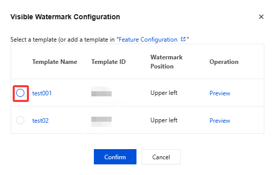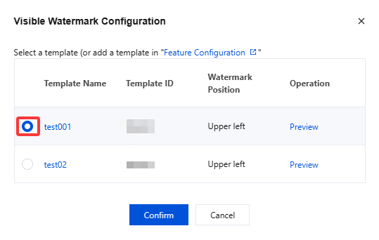 After the template is bound successfully, the visible watermark feature will be enabled for push addresses under the specified push domain name.